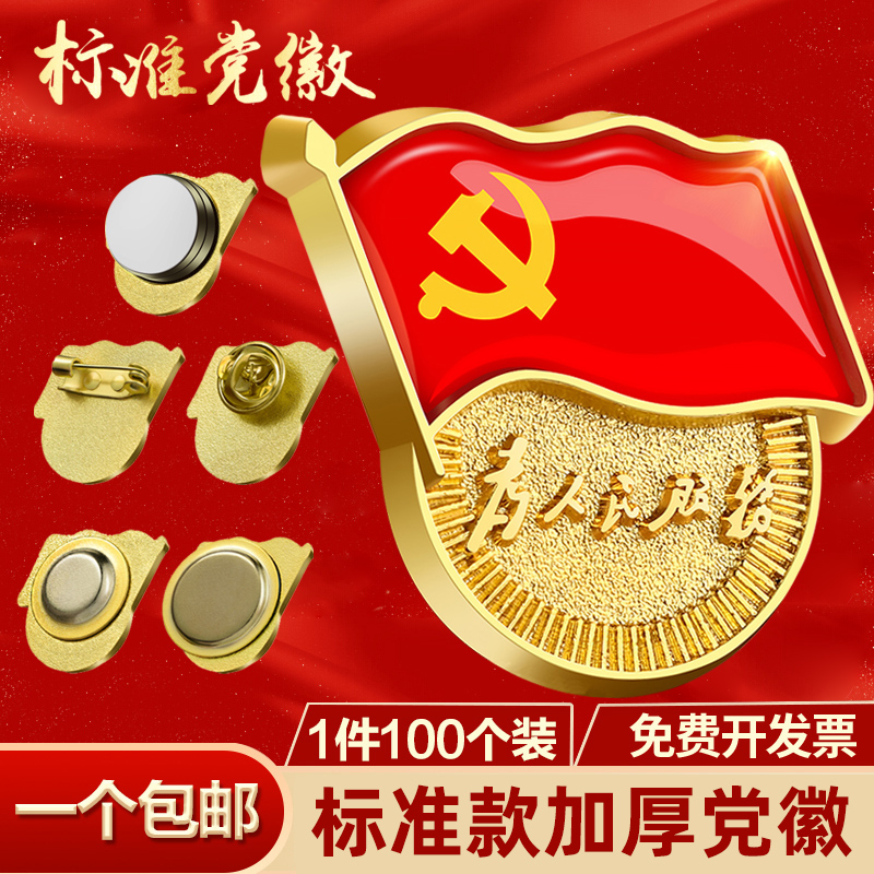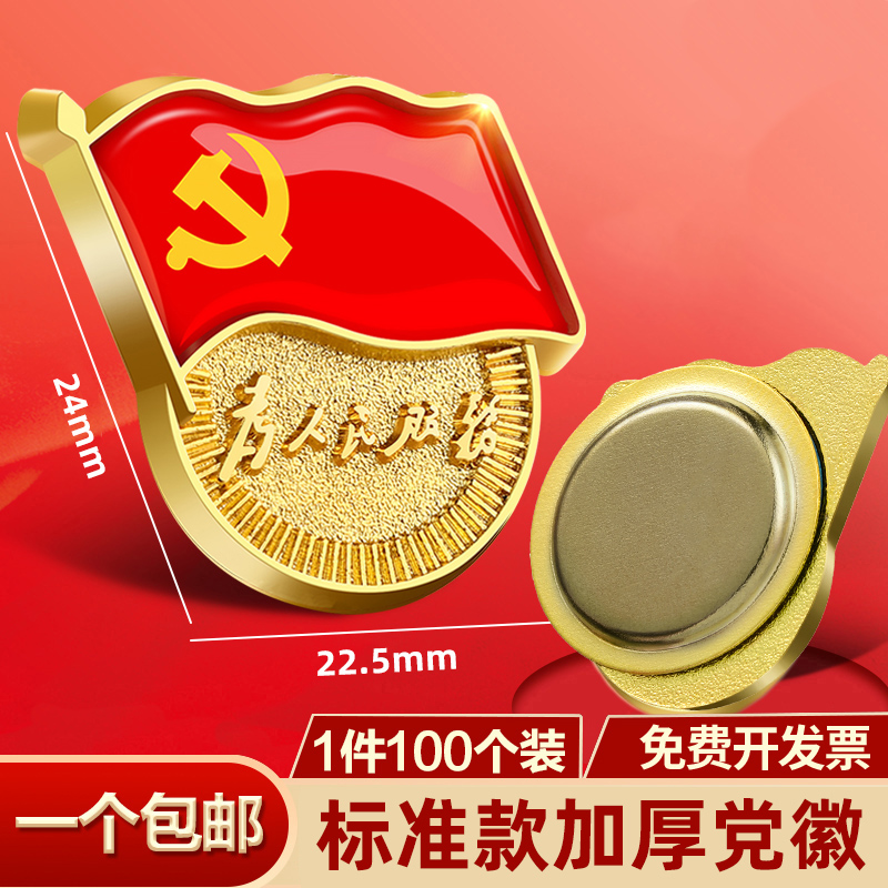 2024年新版党徽标准型别针式胸针新吸铁石为人民服务胸章小磁铁胸徽磁吸磁扣党微蝴蝶扣强磁镀金党徽徽章