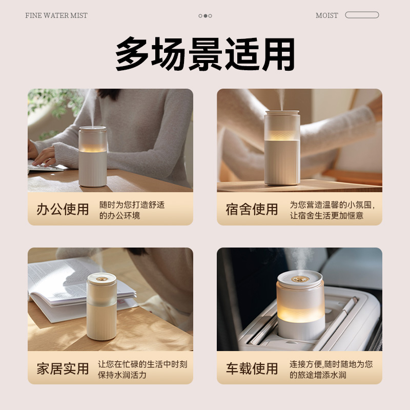 2025新款无线加湿器小型迷你usb充电便携式办公室桌面空气香薰喷雾家用轻音卧室宿舍学生矿泉水车载婴儿精油