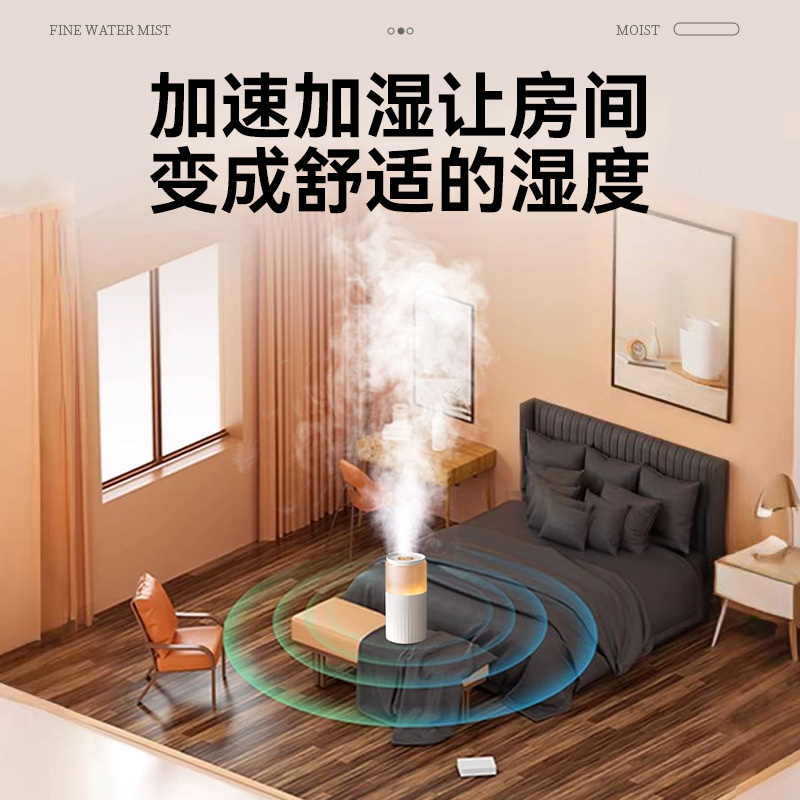 董宇晖推荐】加湿器双喷无线家用静音便携办公室桌面迷你空气净化器学生宿舍补水孕妇婴儿卧室空调房保湿大雾
