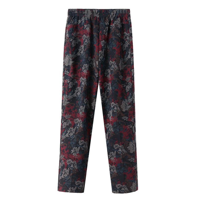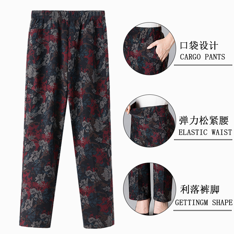 中老年人女裤春季花裤子奶奶春秋加肥大码长裤妈妈加绒加厚直筒裤