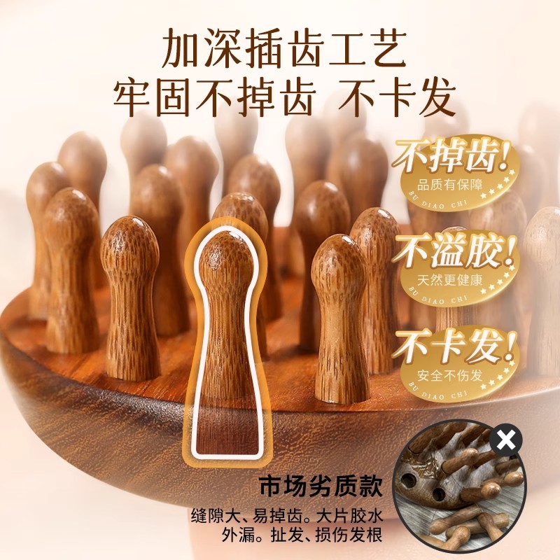 天然檀木按摩梳子头皮经络养发小木梳疗脱发梳头防刷头部疏通神器