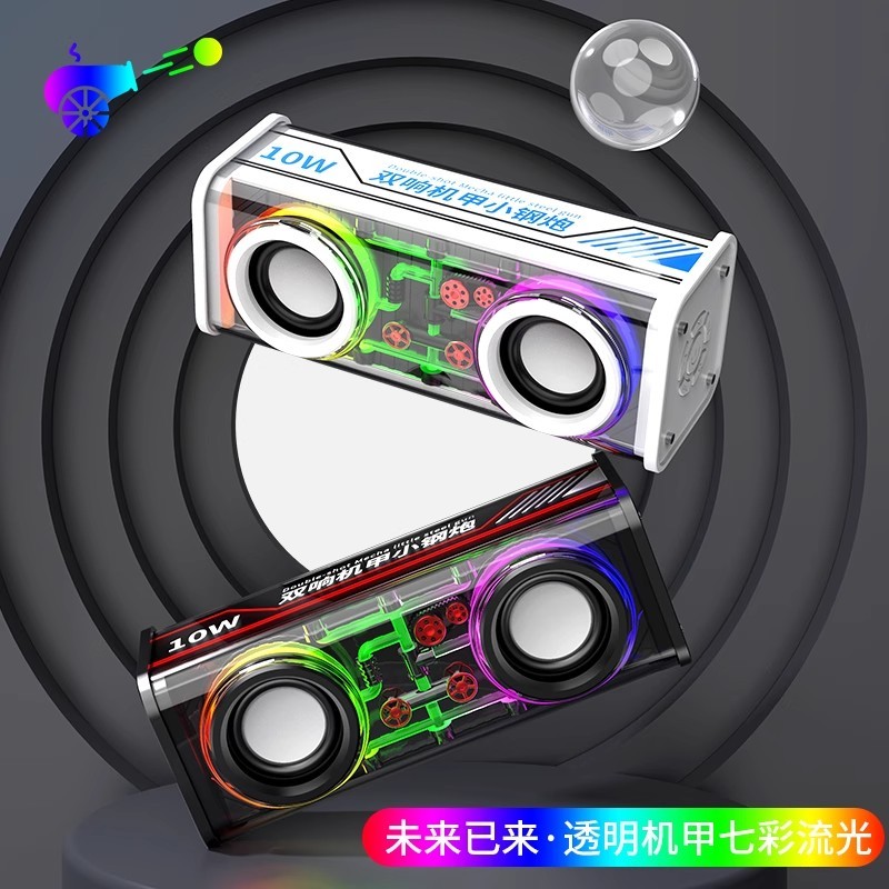 透明炫酷彩灯无线蓝牙音箱双低音炮桌面音响TWS大音量机甲小钢炮