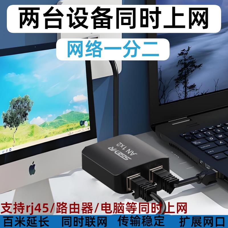 网线分线器一分二分线分配器RJ45一拖二交换机百兆网络同时上网络