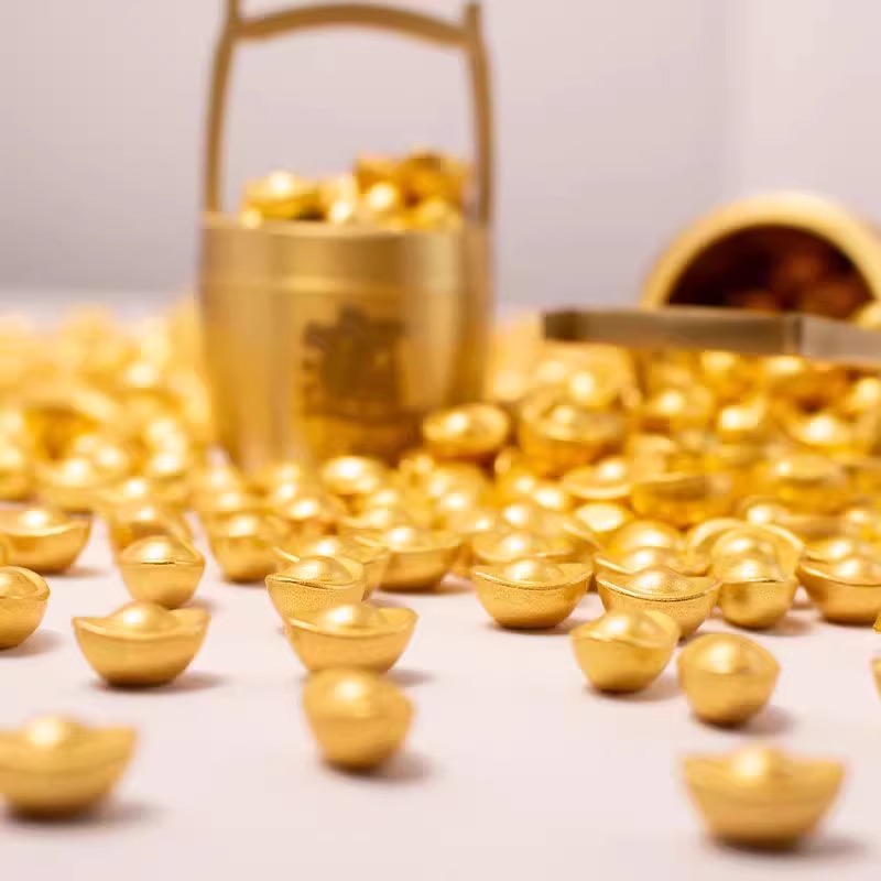 实心沙金元宝客厅聚宝盆米缸招财金色饰品厘米装饰开业乔迁小礼物