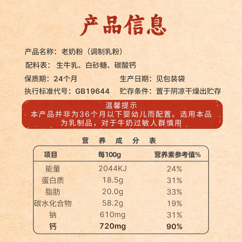 河套奶粉高钙全脂老奶粉内蒙古国产成人大学生儿童冲泡经典妹子