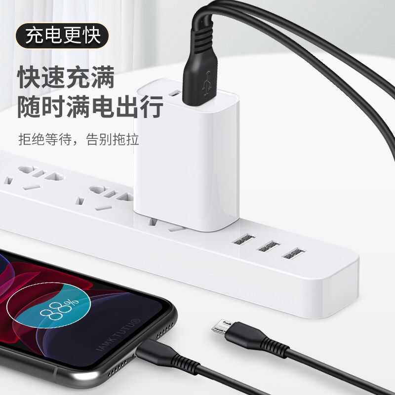 倍思安卓数据线microusb快充手机充电线器充电宝闪充蓝牙耳机小风扇台灯适用于华为荣耀oppo小米vivo加长2米