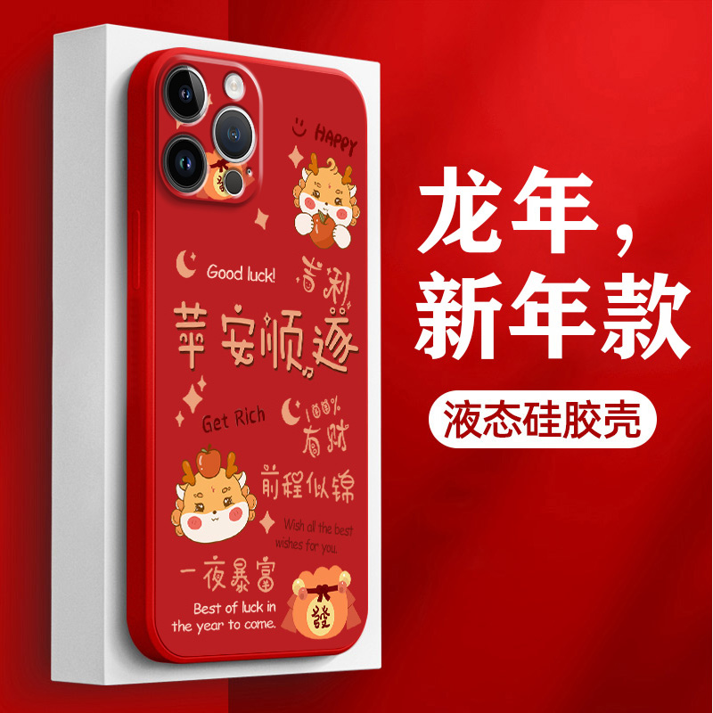 平安顺遂适用于苹果16手机壳15新年红iphone13液态硅胶14promax镜头全包12mini带挂绳11龙年喜庆十四pm保护套