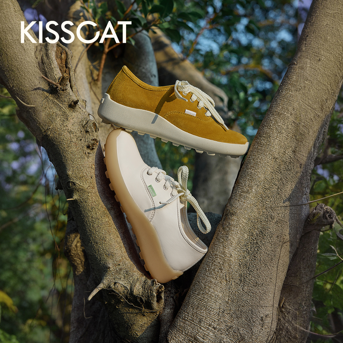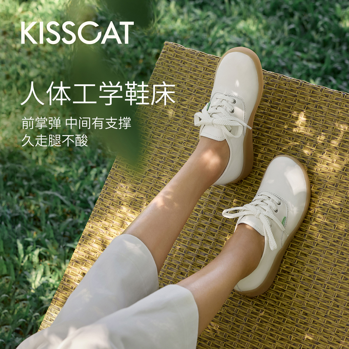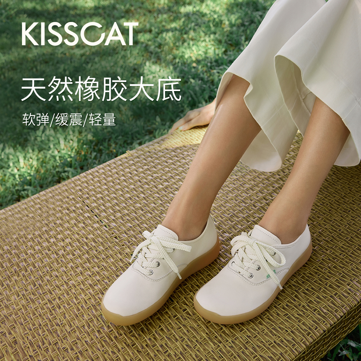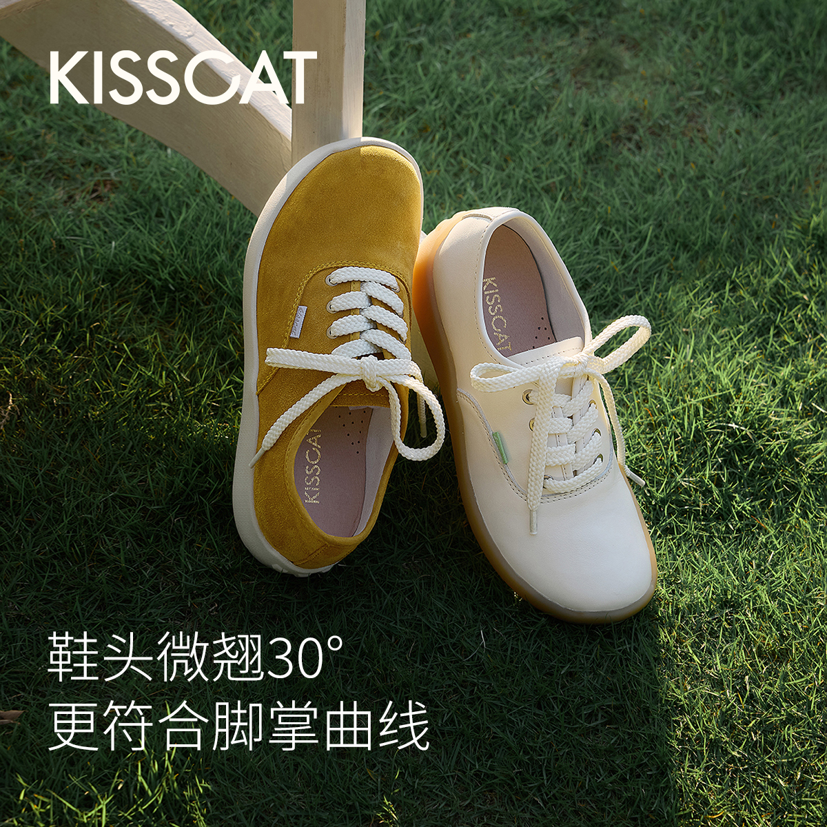 KISSCAT接吻猫[豌豆系列]25秋薄底运动鞋一脚蹬小白鞋轻便休闲鞋
