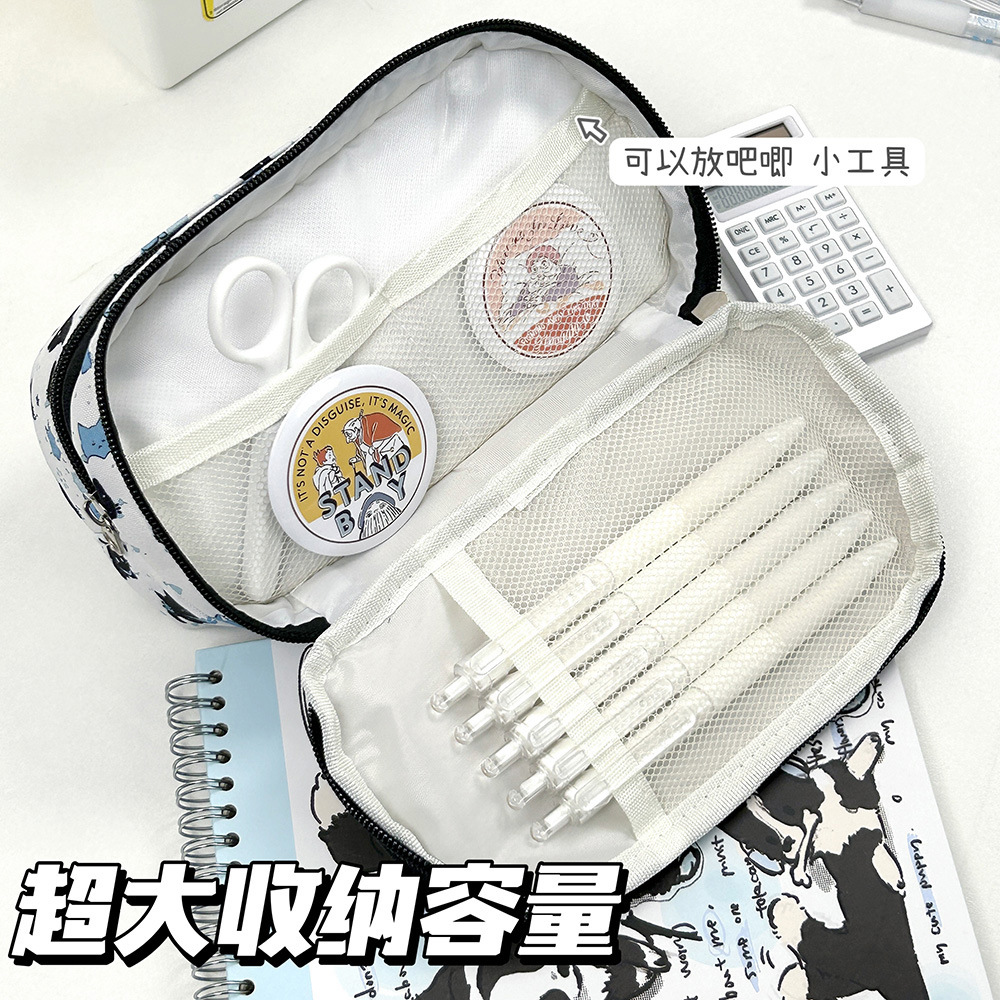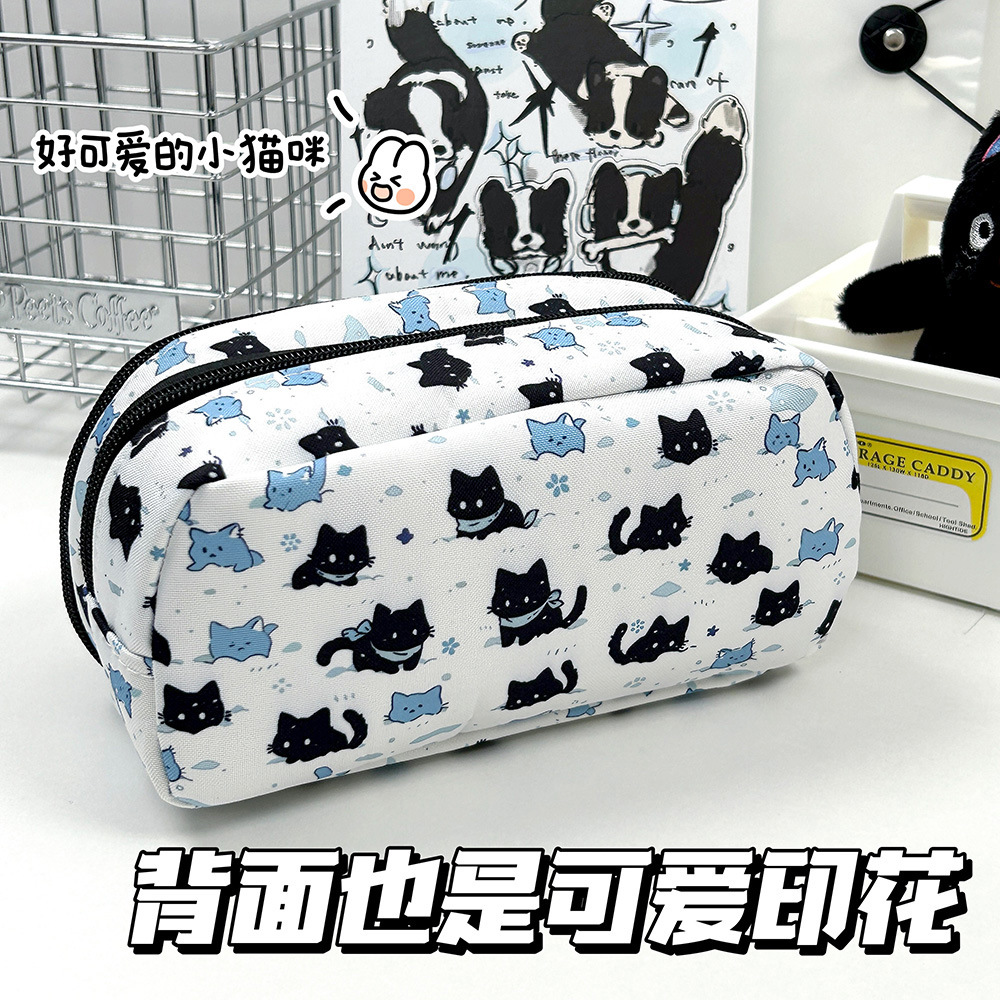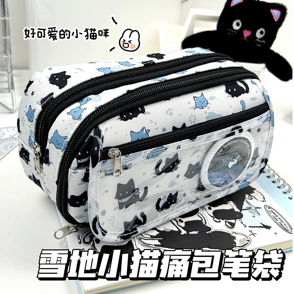 日系卡通可爱雪地小黑猫痛包笔袋高颜值大容量铅笔袋少女心收纳包化妆包多功能铅笔盒初高中生文具盒