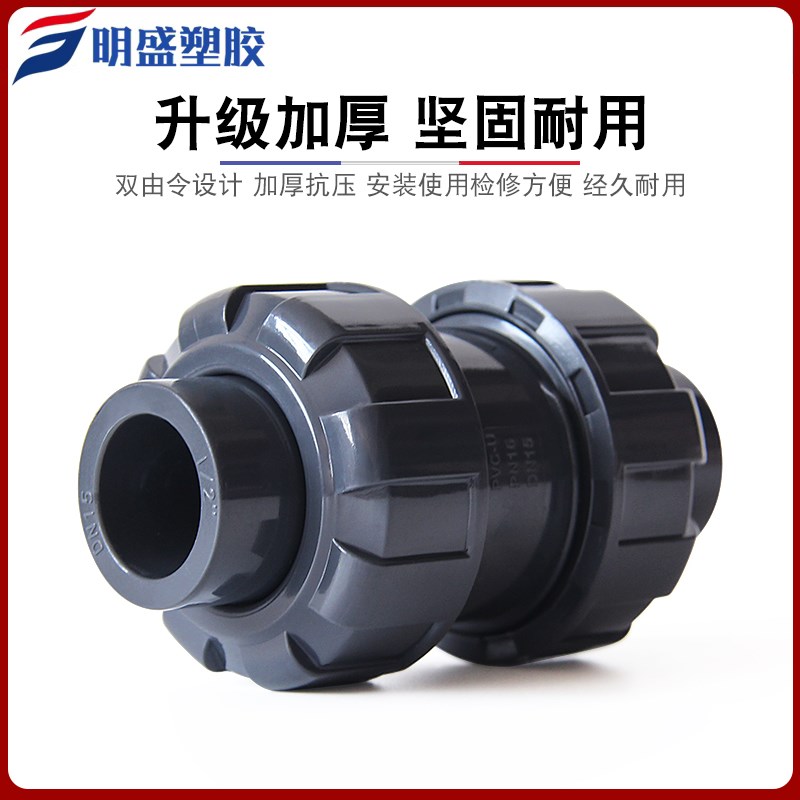 UPVC双d活接止回阀鱼缸单向阀双由令立式球式逆止阀化工级配件深