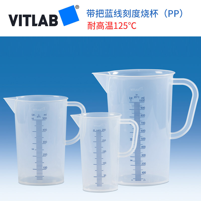 VITLAB德国进口带把蓝线刻度烧杯50ml/100ml/250ml/500ml/1000ml/2000ml/3000ml/5000mlPP进口塑料刻度烧杯