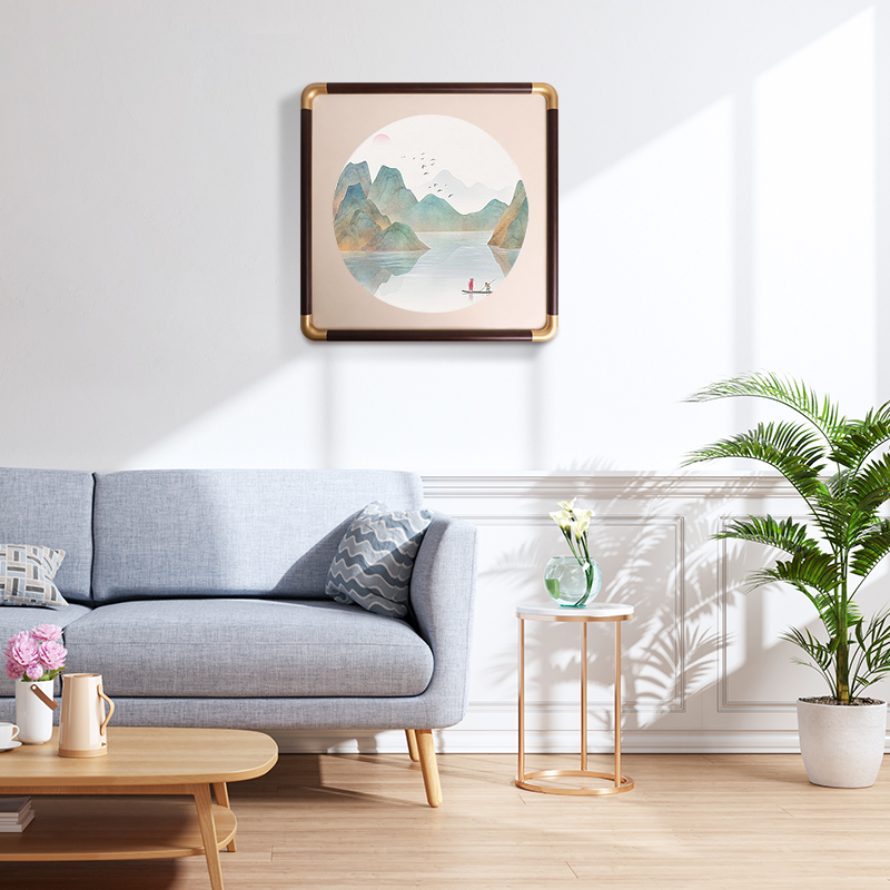 新中式方形仿铜角画框实木框装裱卡纸33、38、50、68cm空白书法国画挂墙可定制