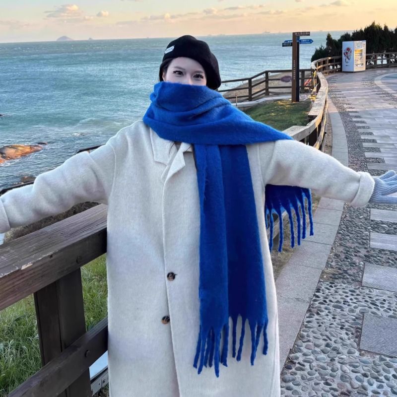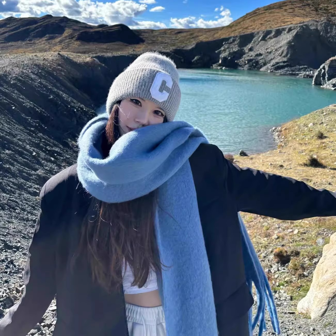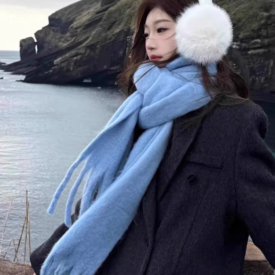 韩版纯色加厚围巾2025冬季新款高级感围脖冬天百搭保暖防寒披肩女