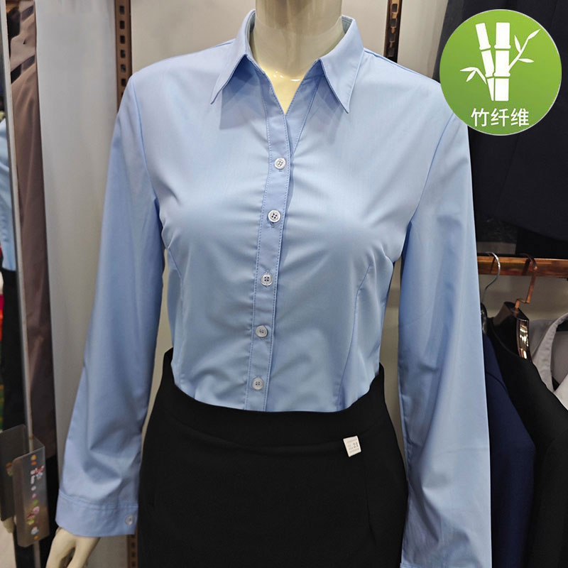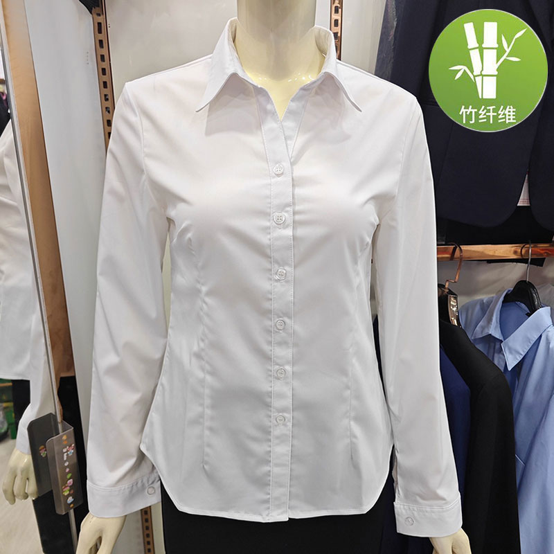 春秋季高级感竹纤维白衬衫女商务ol通勤大码职业正装长袖工装上衣