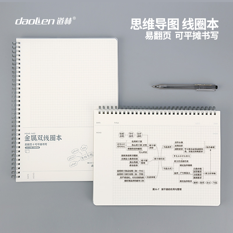 思维导图笔记本子A4大号双线圈本B5本白纸虚线方格ins简约风网格手账上翻横式大学生考研法考记事本道林文具