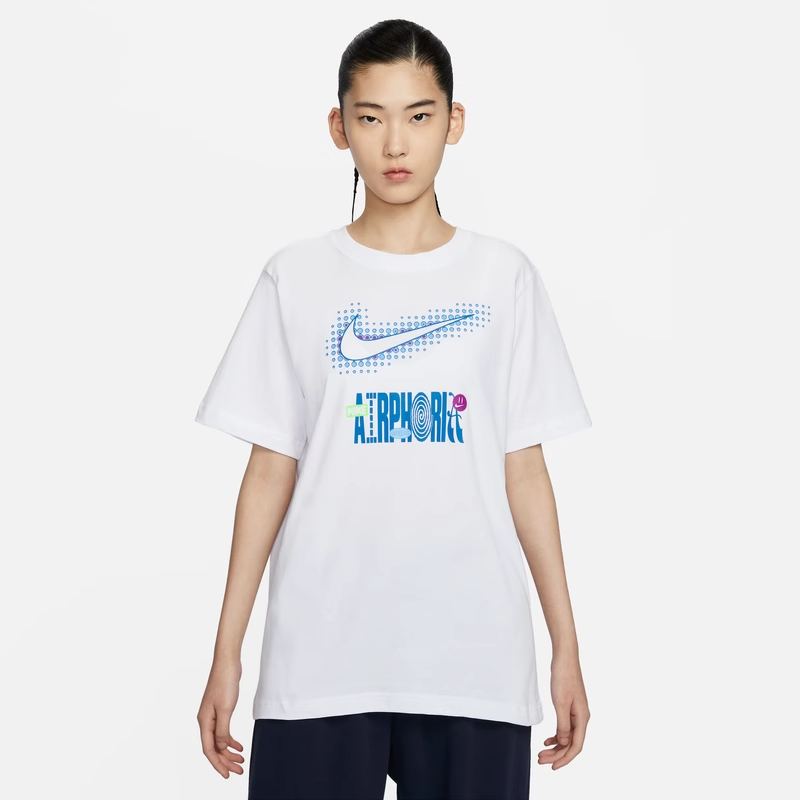 NIKE耐克女子印花T恤夏新款宽松印花白色棉质短袖上衣FV4263-100