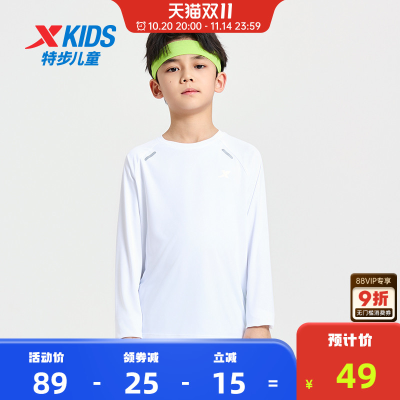 盾甲|特步童装男童速干长袖T恤2025秋冬新款儿童上衣服中大童秋装