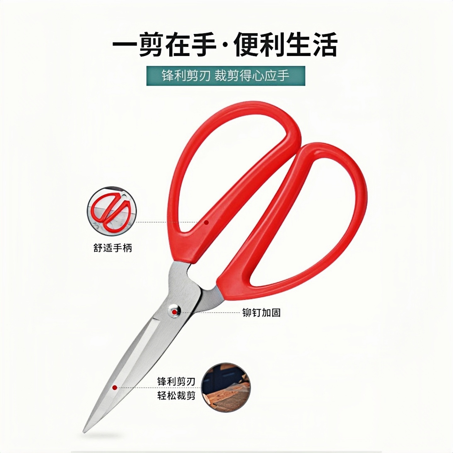 红色剪刀家用不锈钢裁纸婚庆手工大剪刀快递剪纸缝纫专用锋利剪刀