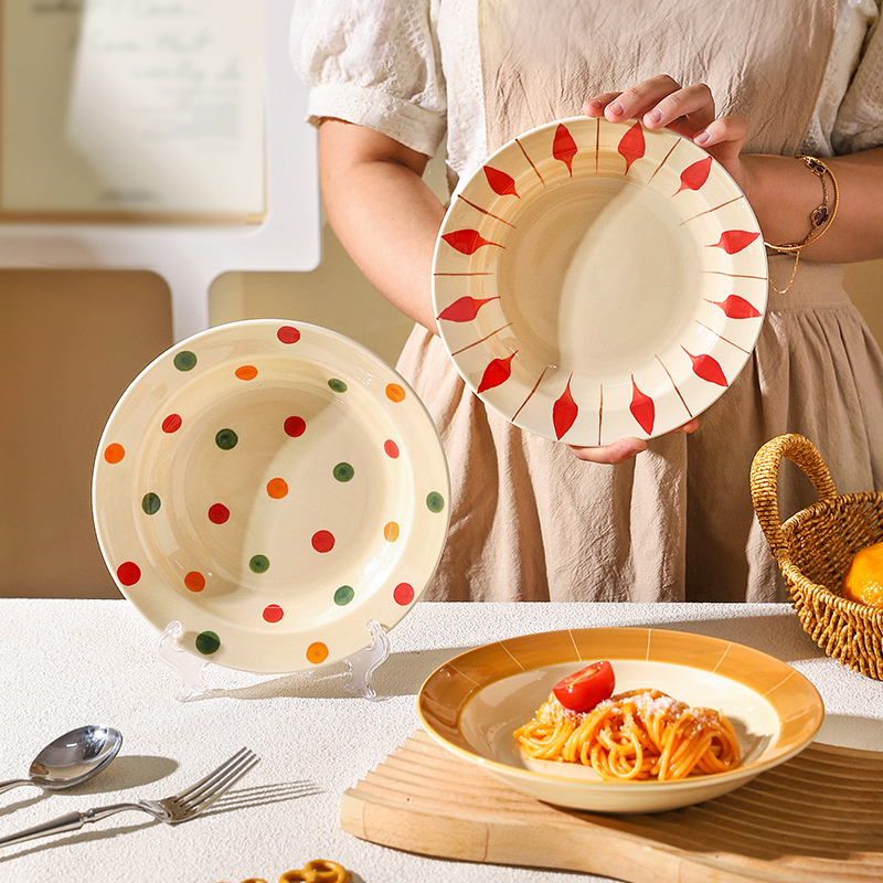 创意ins风高级感荷叶边陶瓷盘意面盘深盘西餐盘水果沙拉碗酸奶碗