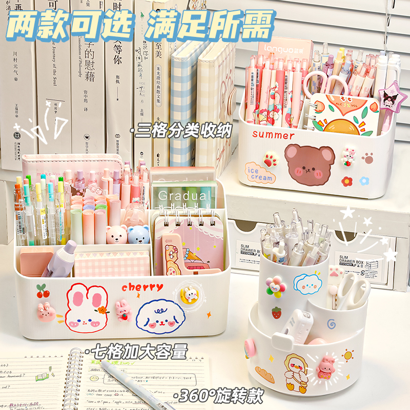 可爱笔筒大容量学生桌面收纳盒女孩办公室儿童轻奢高级感创意摆件