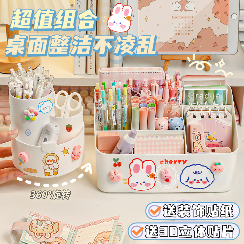 可爱笔筒大容量学生桌面收纳盒女孩办公室学生轻奢高级感创意摆件