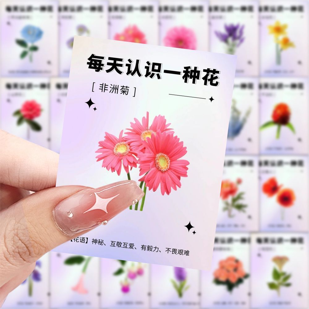 126张每天认识一种花贴纸中国风鲜花简介装饰手机手帐笔记贴画ins