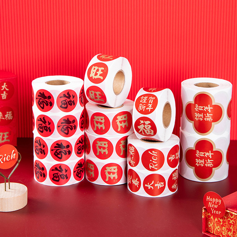 新年系列贴纸福字原创设计贴贴纸春节祝福吉祥手帐贴画装饰用不干胶封口贴过年礼品信封红包封口标签贴纸