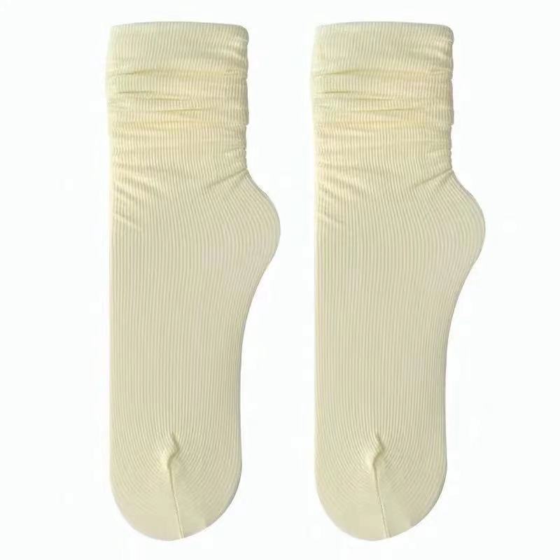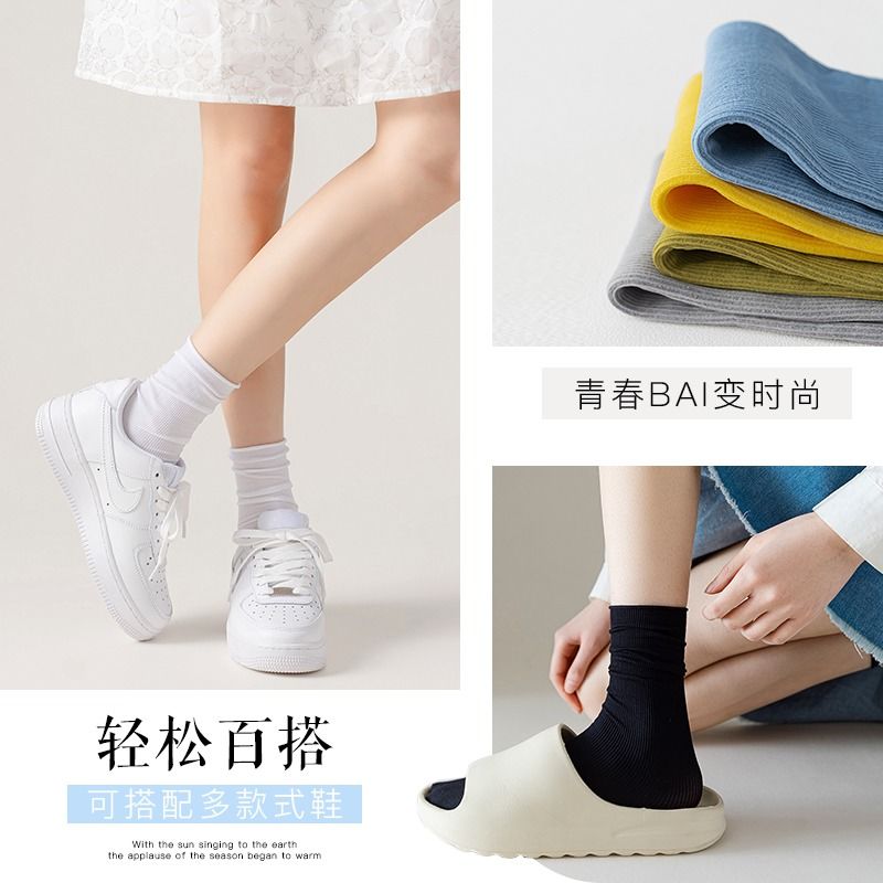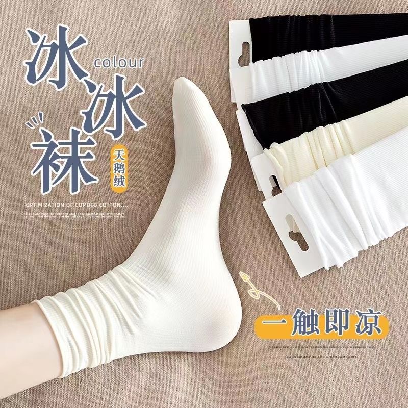 黑白色冰冰袜子女春秋薄款中筒堆堆袜夏天网红款无骨冰丝长袜黑色