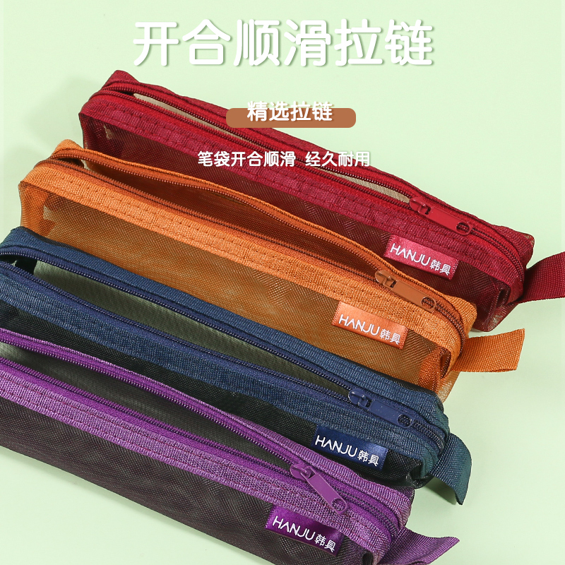 网纱复古色简约透明笔袋铅笔袋长条方形文具袋收纳袋学生考试专用便携笔袋mini方形随身便携小笔袋迷你男女生