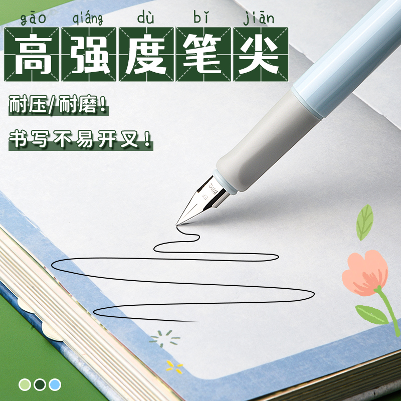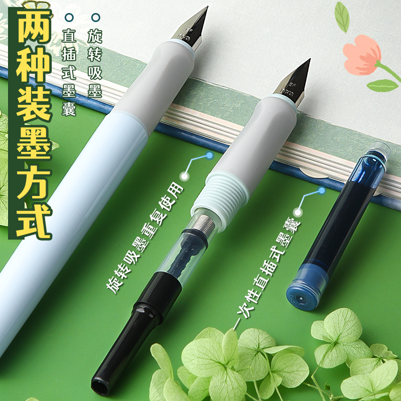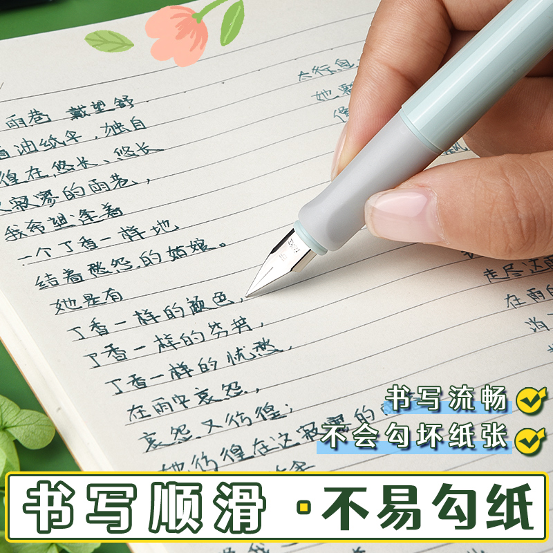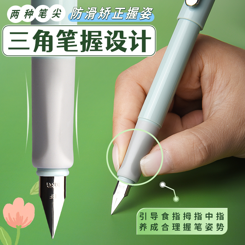 晨光练字钢笔小学生三年级上册学生专用钢笔明暗尖书法练字儿童初学者可擦可替换墨囊刚笔纯蓝墨水高颜值男女