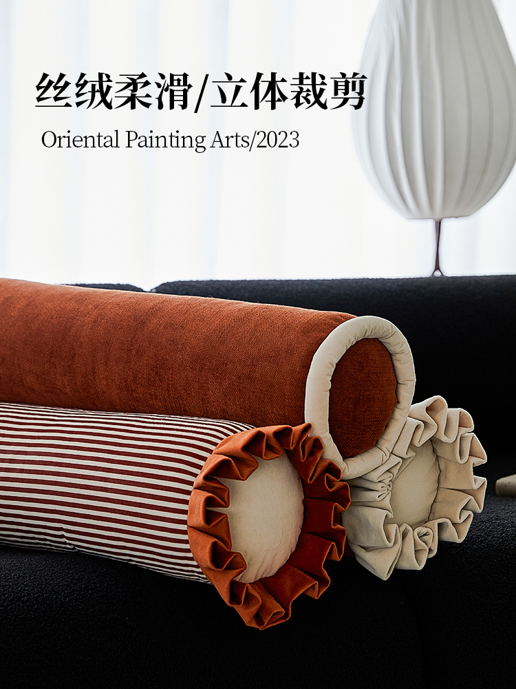 奶油风腰枕长方形沙发靠垫卧室床头客厅雪尼尔绿色沙发抱枕靠枕套