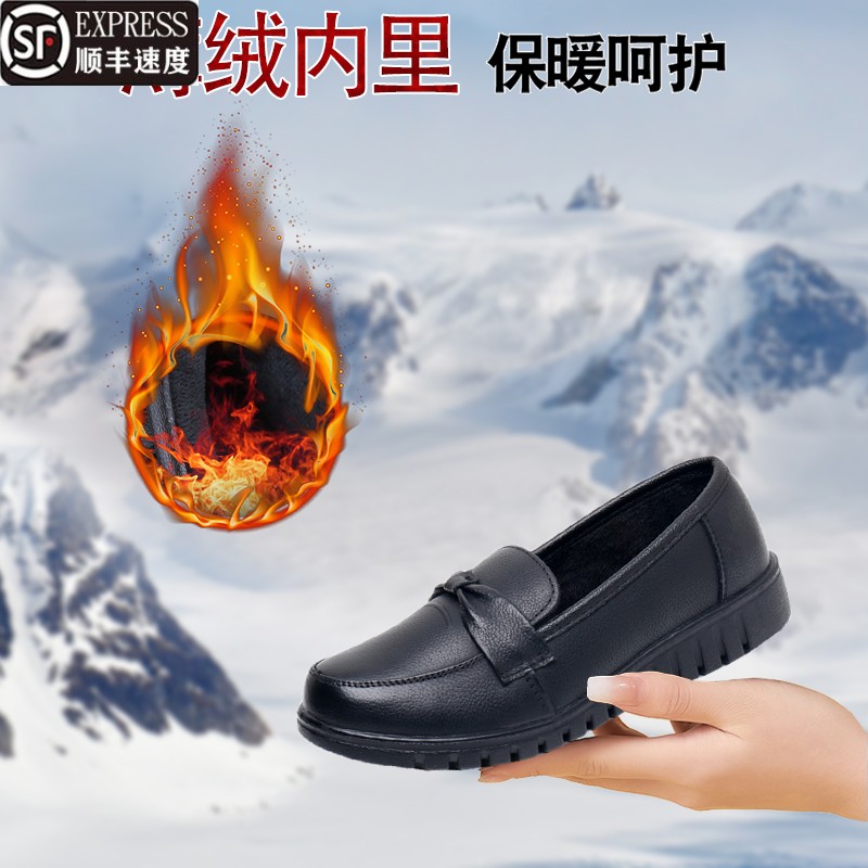 足力建老人鞋2025新款冬加绒真皮中老年软底中年皮鞋保暖妈妈鞋