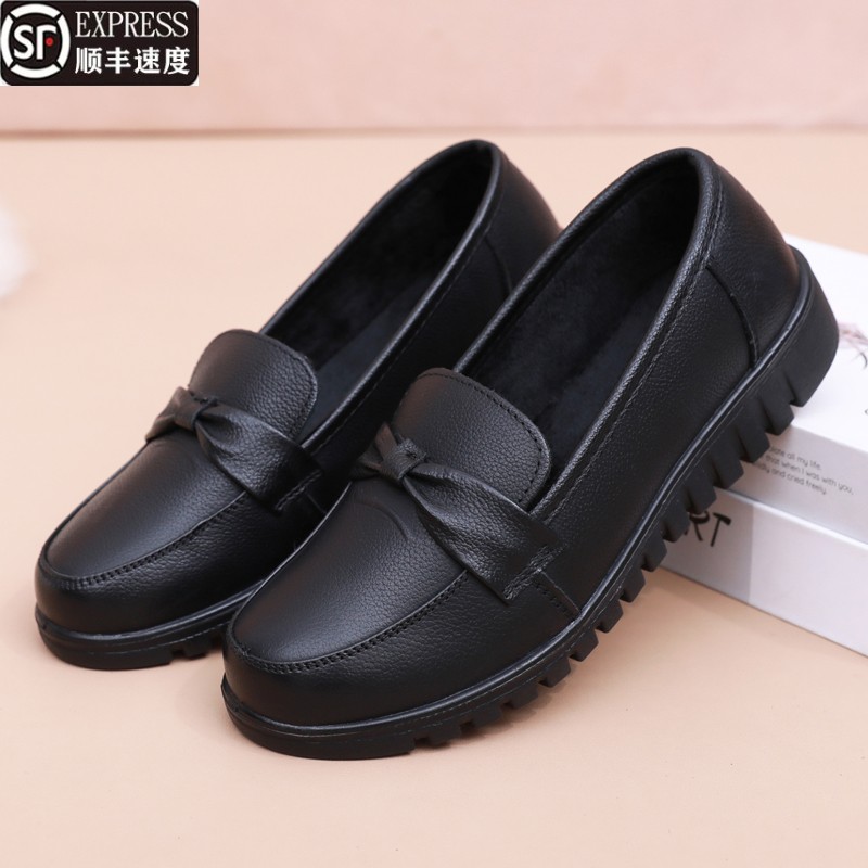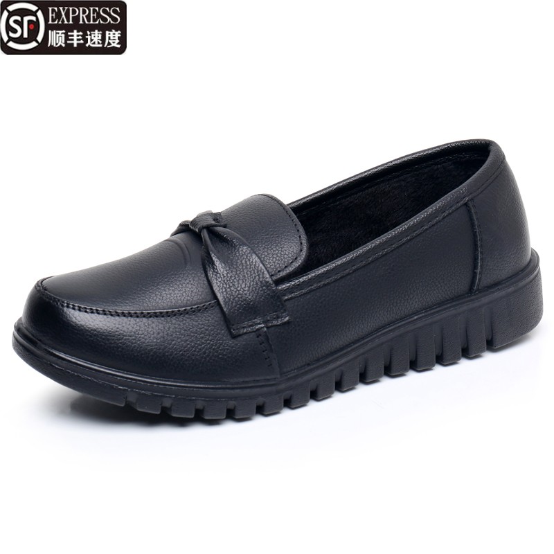 牛筋底妈妈鞋真皮防滑软底休闲中老年单鞋舒适蝴蝶结中年春秋皮鞋
