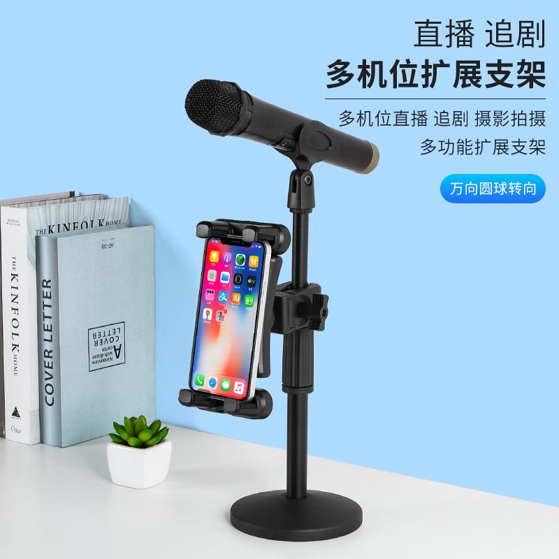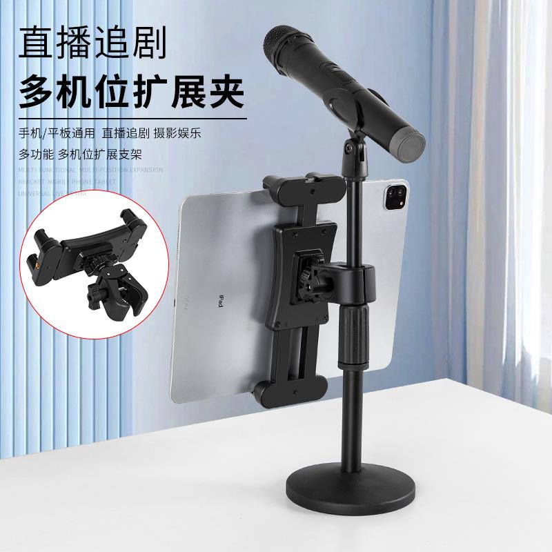 多功能手机直播支架多机位平板夹落地三脚架双机位扩展夹子头配件
