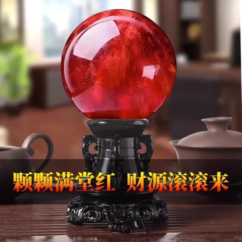 雅鸽(饰品)鸿运珠摆件红水晶转运球聚宝盆装饰家居饰品开业礼物