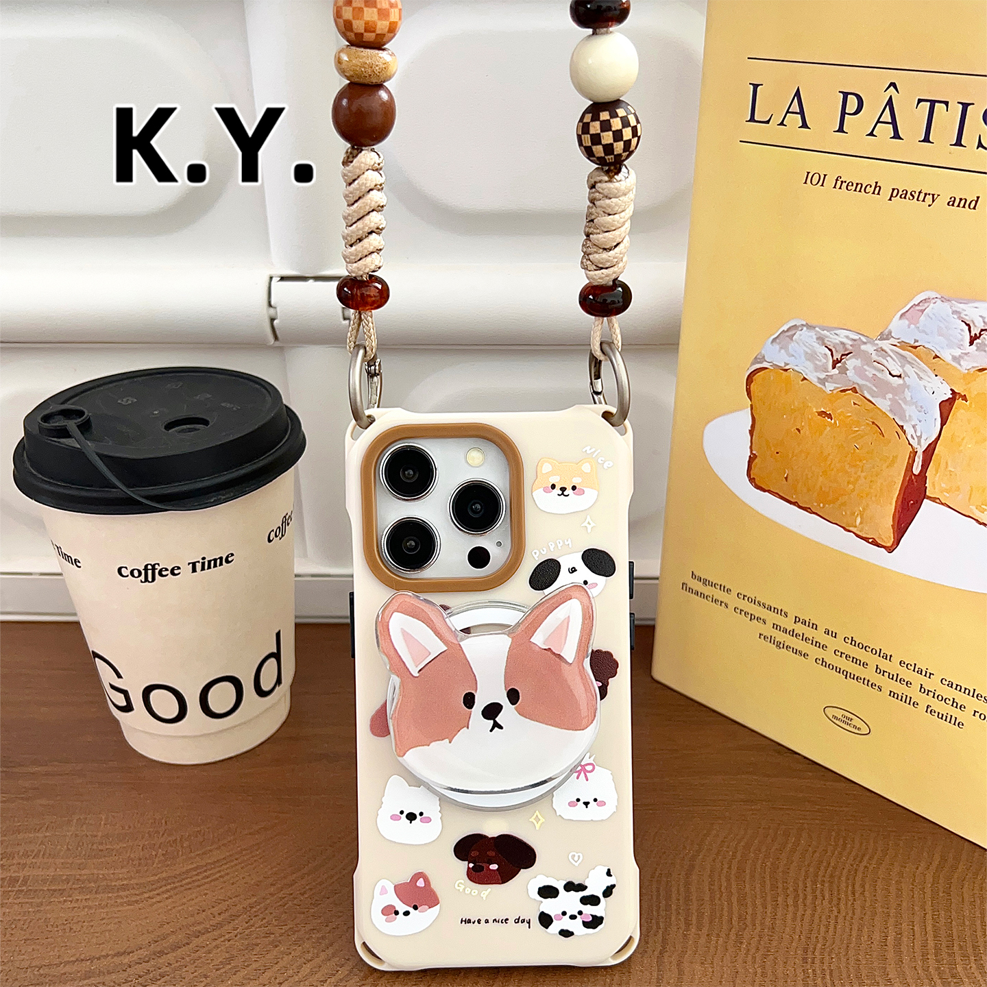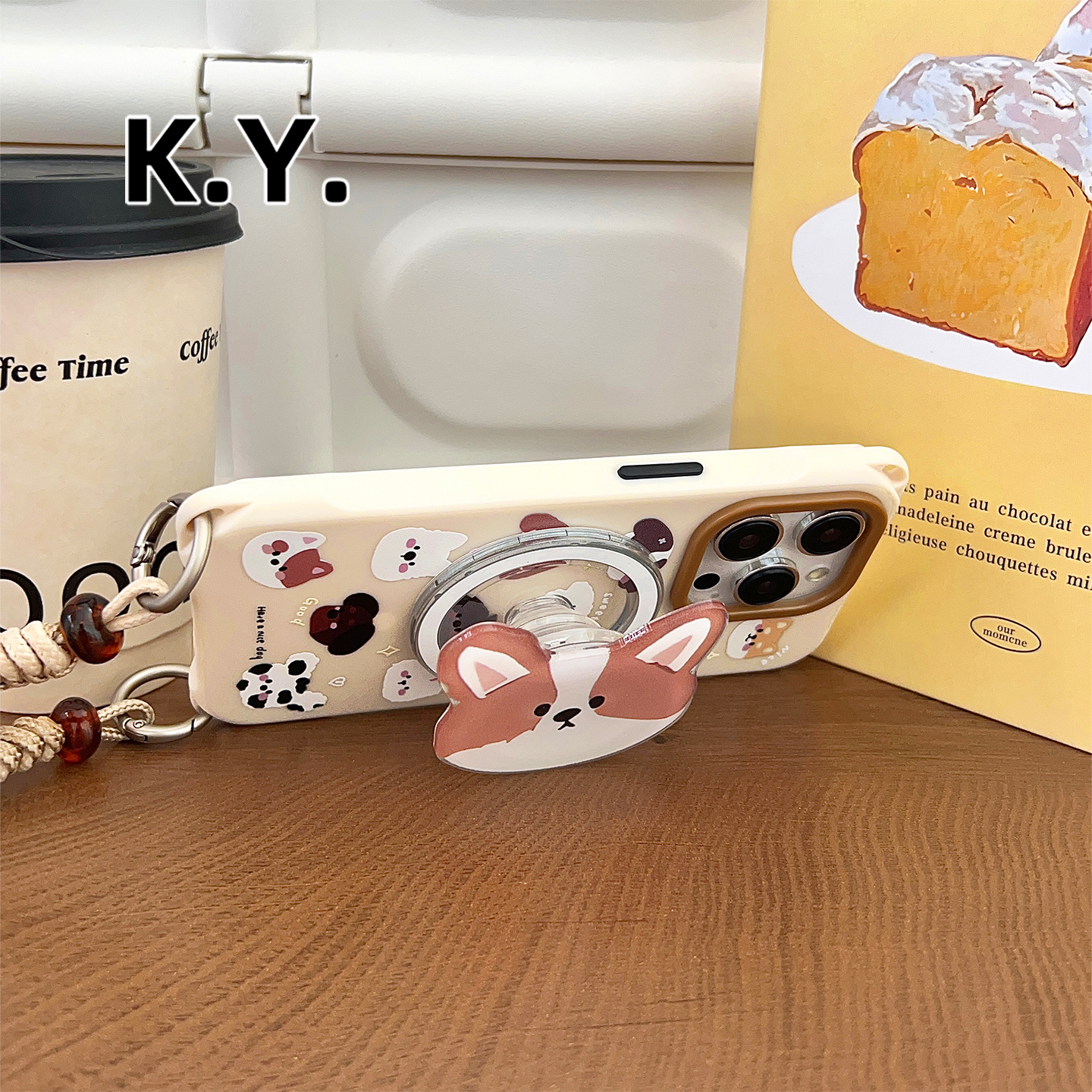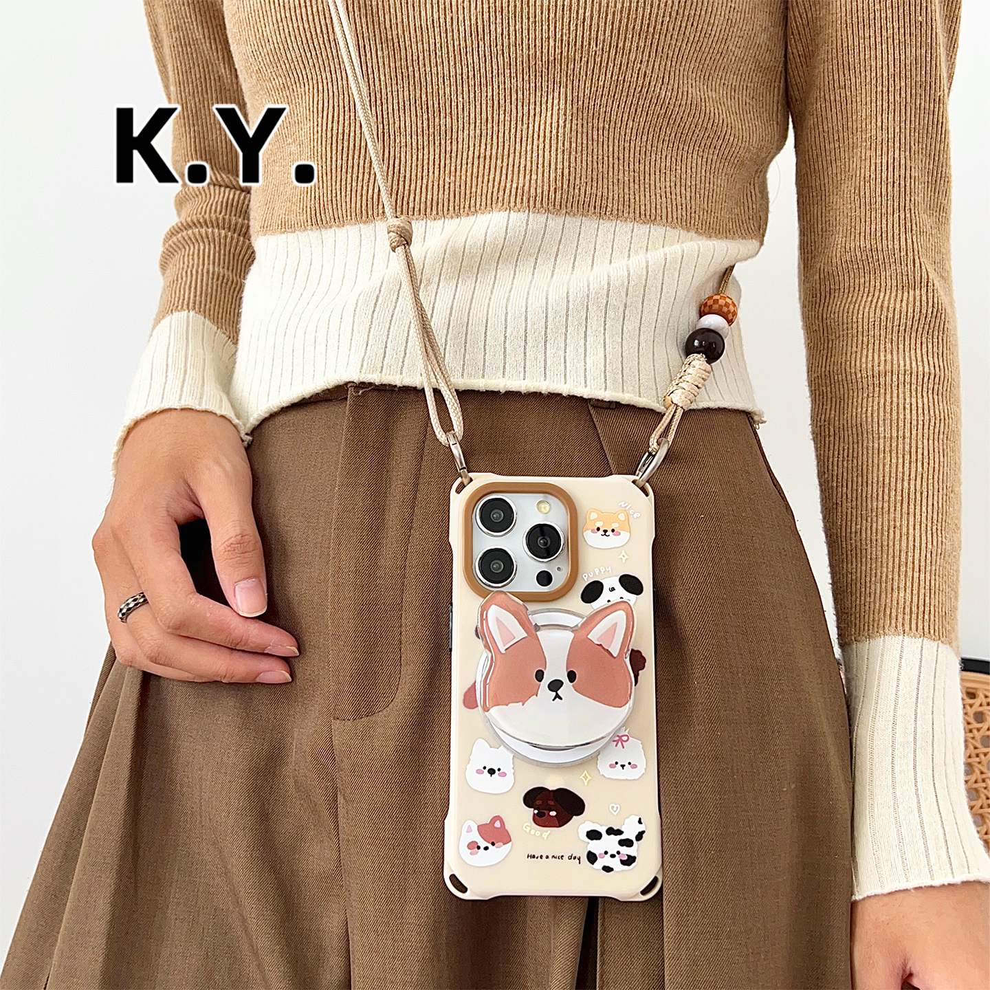 卡通狗磁吸支架手机壳带挂绳适用于苹果17/16Pm华为mate70/60Pro手提手腕PURA80斜挎珠链15/14ultra防摔硬壳