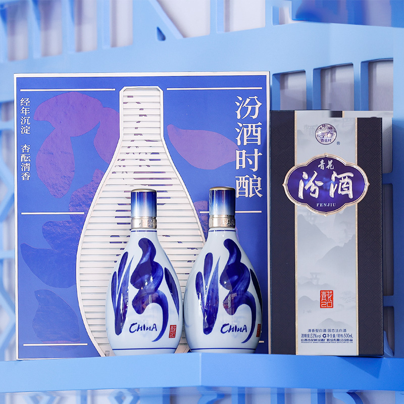 官方山西杏花村酒53度汾酒青花20 500ml*2瓶白酒时酿限定礼盒送礼