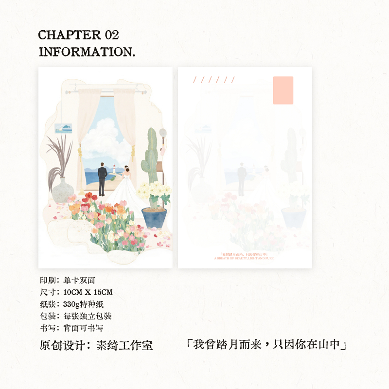 「我曾踏月而来,只因你在山中」原创明信片贺卡情书浪漫插画结婚