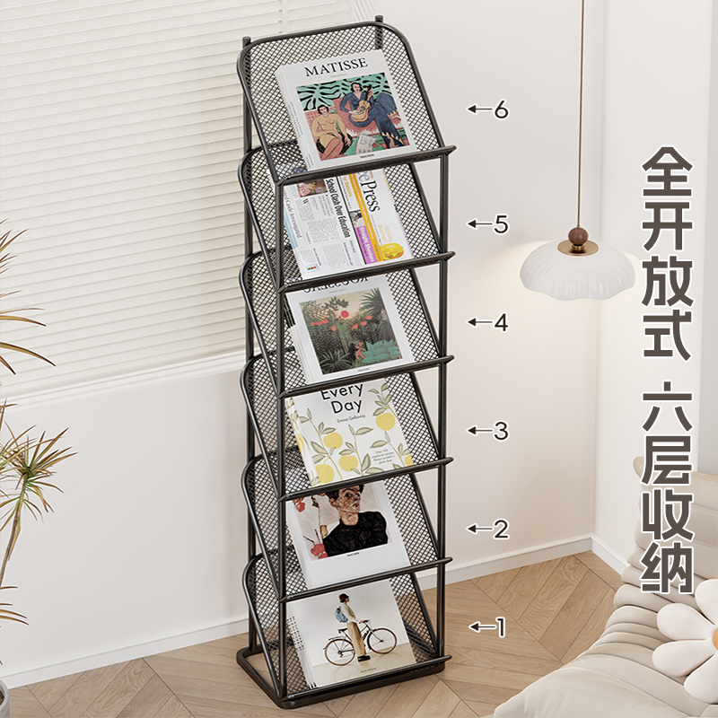 报刊架落地网红宣传单折页摆放架报纸收纳神器靠墙铁艺置物架文件资料书报展示架家用多层简易书架书刊阅读夹