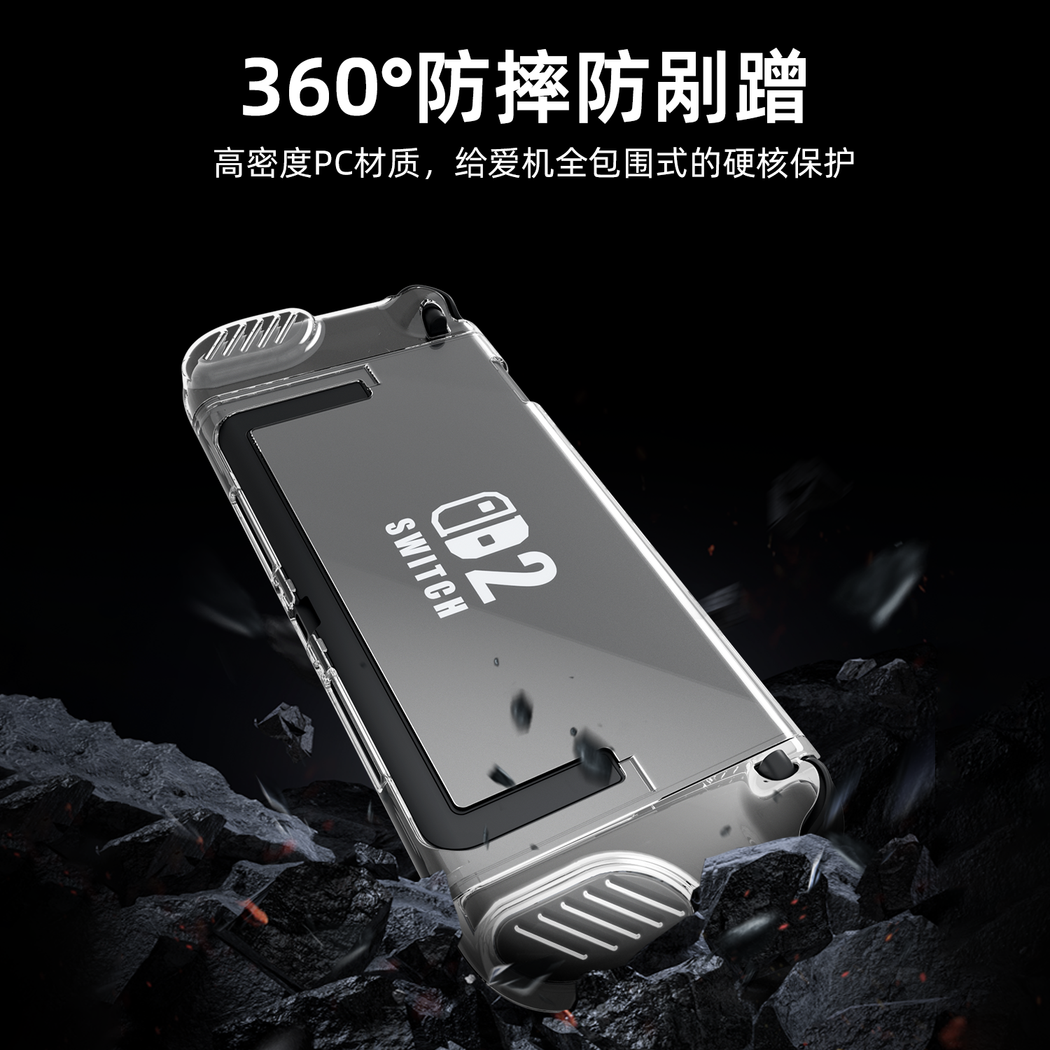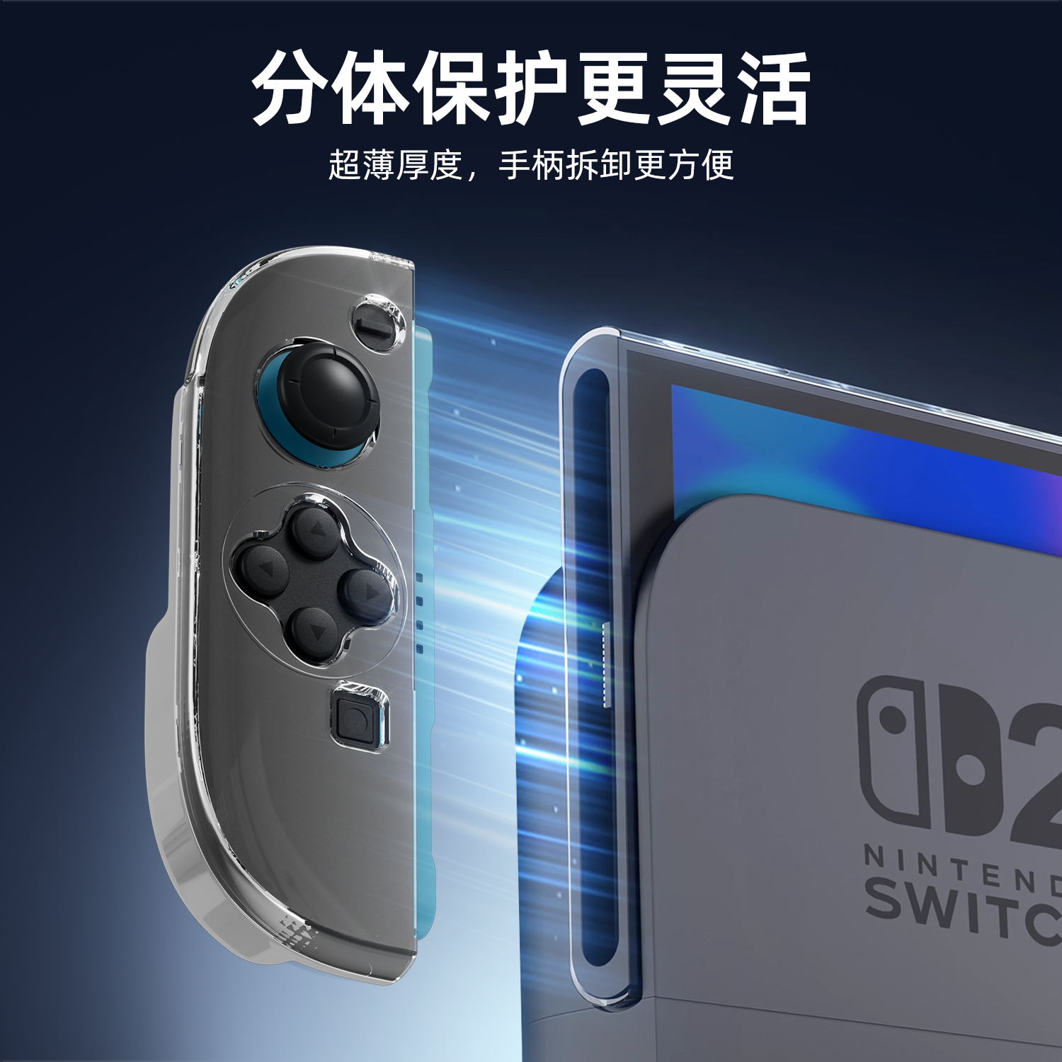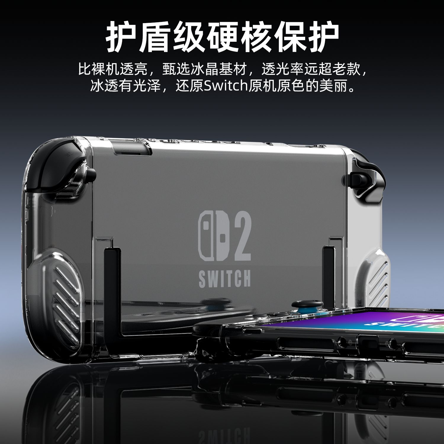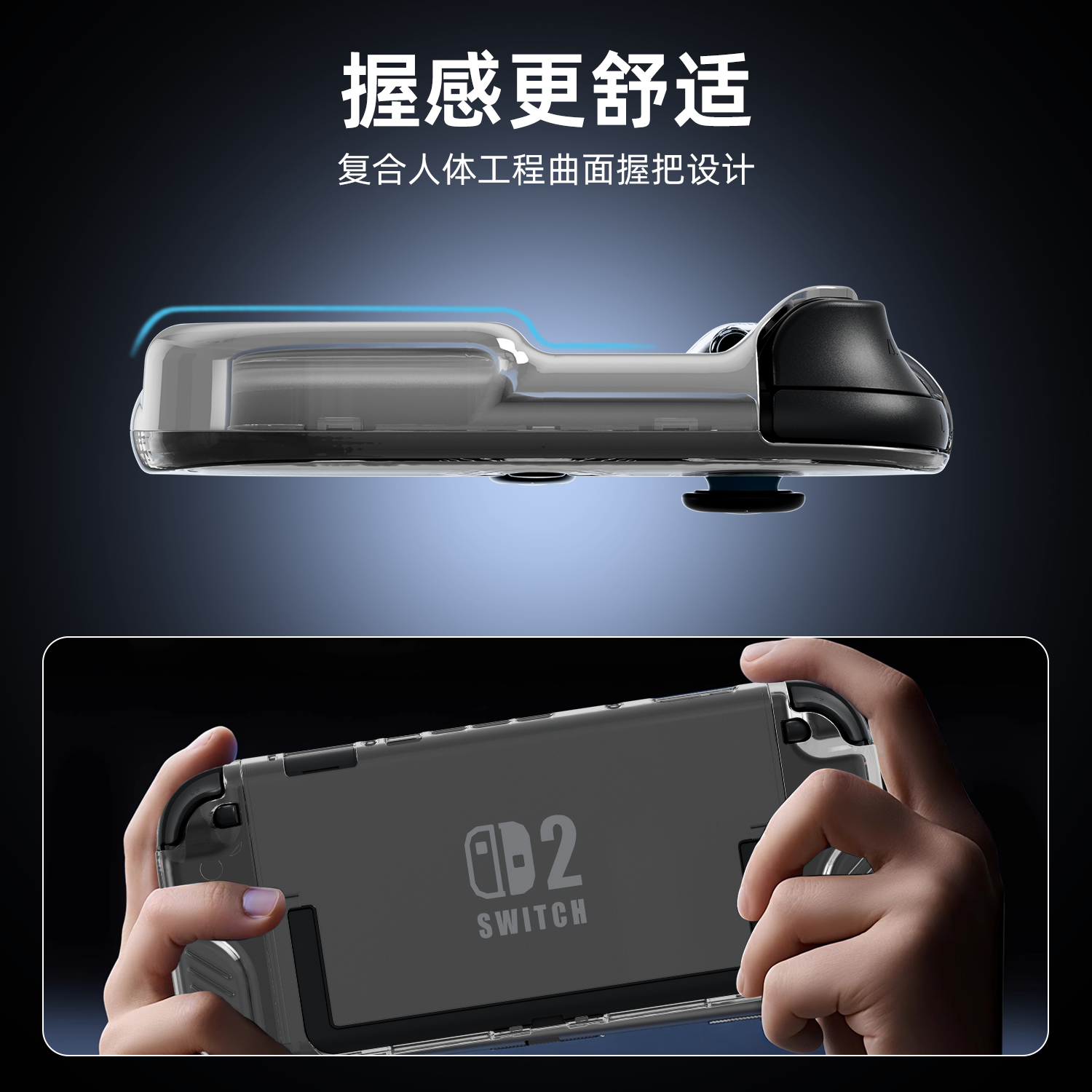 Bibuks适用于任天堂Switch2保护壳NS2代透明新款保护套全包ns2硬壳二代游戏机透明壳防滑分体式握柄手柄配件