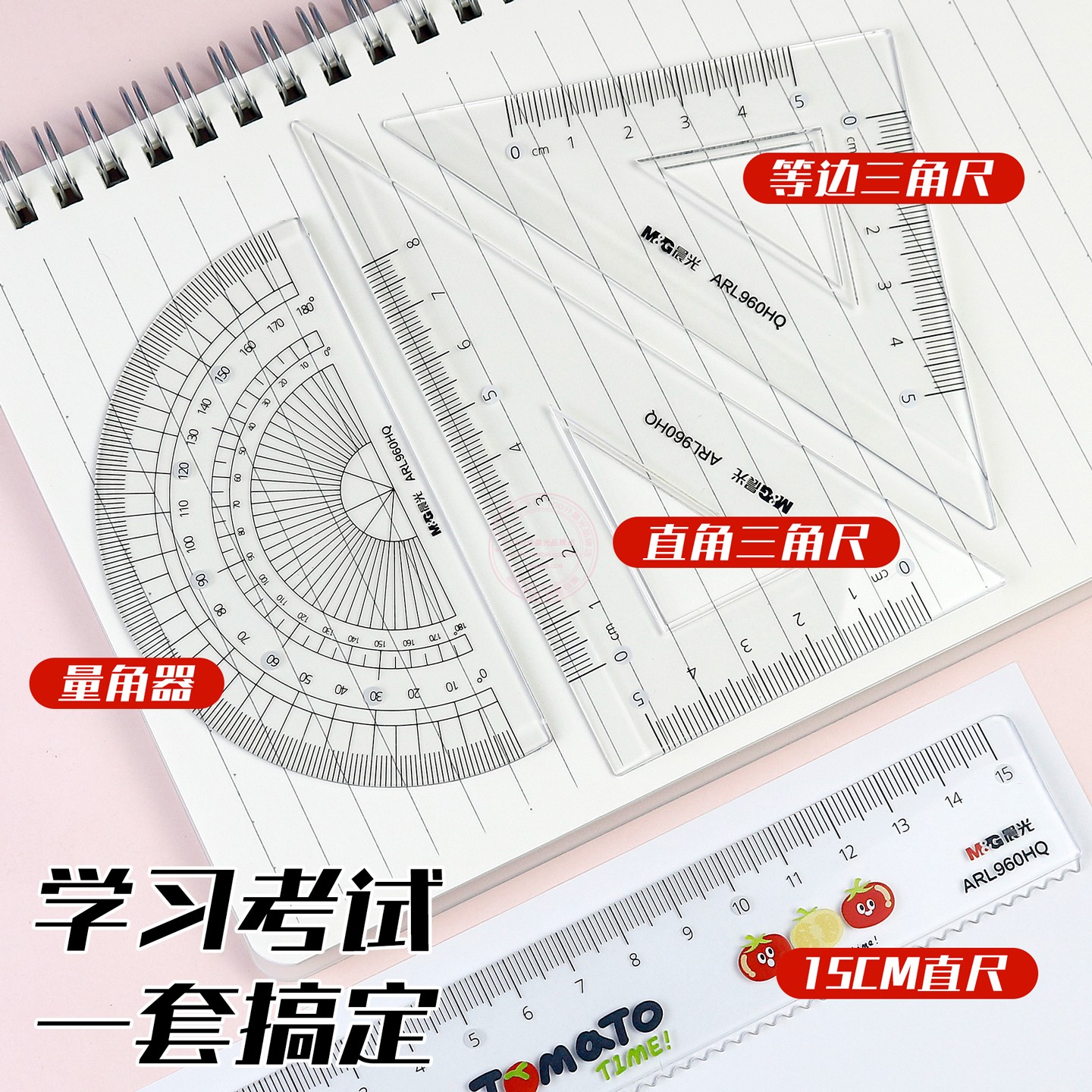 晨光番茄与猫四件套尺学生考试卡通15cm直尺三角板量角器ARL960HQ