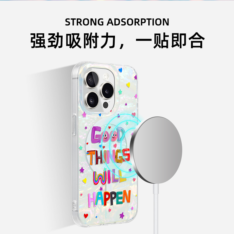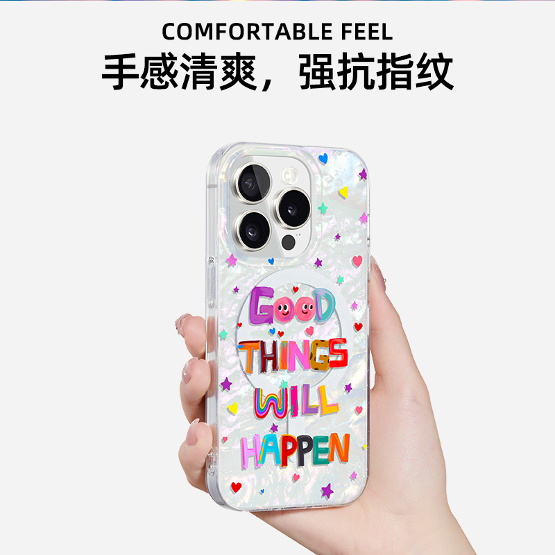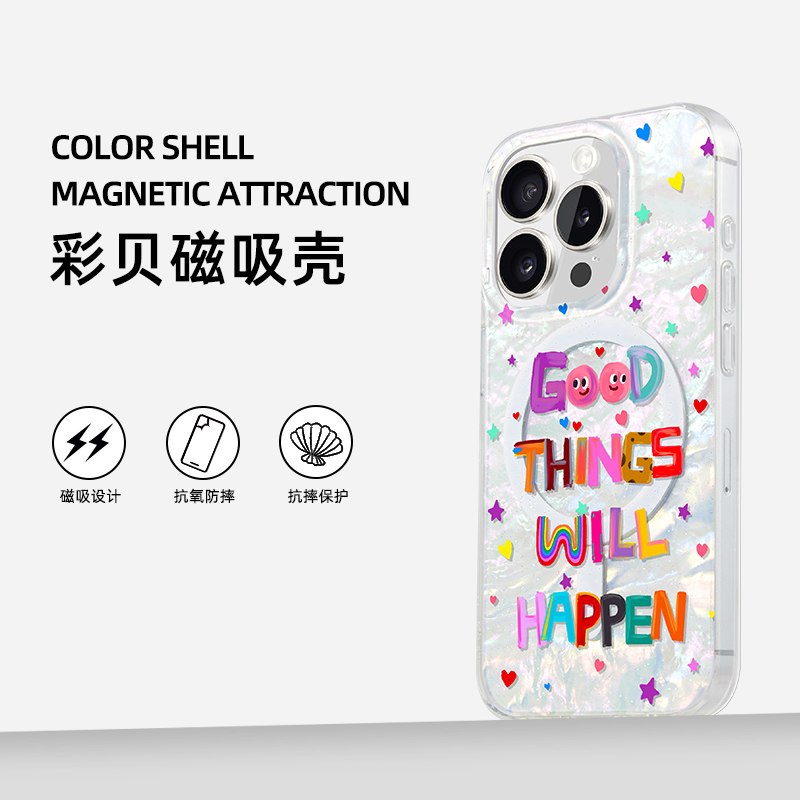 若墨适用苹果17promax手机壳新款iphone16pro女贝壳纹15磁吸带挂绳14高级感彩色字母magsafe创意好事发生13