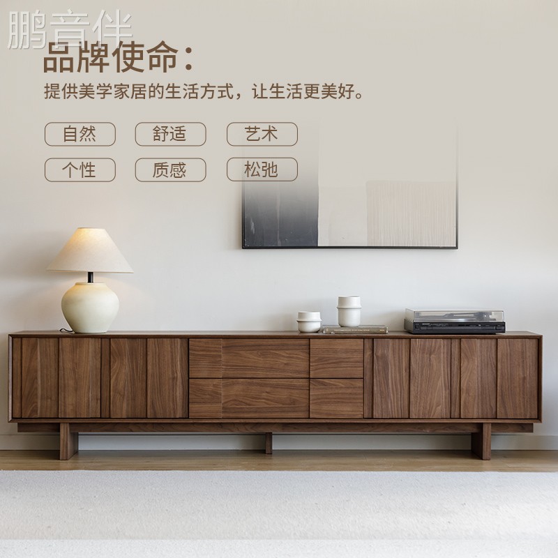 鹏音伴山也侘寂风覆古电视 柜 实木黑胡桃木中古高脚落地 柜 法式高款收纳 柜摆件饰品
