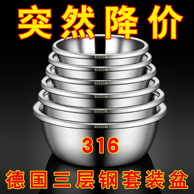 三层钢食品级不锈钢盆套装洗菜盆家用厨房油盆打蛋和面盆外贸批发