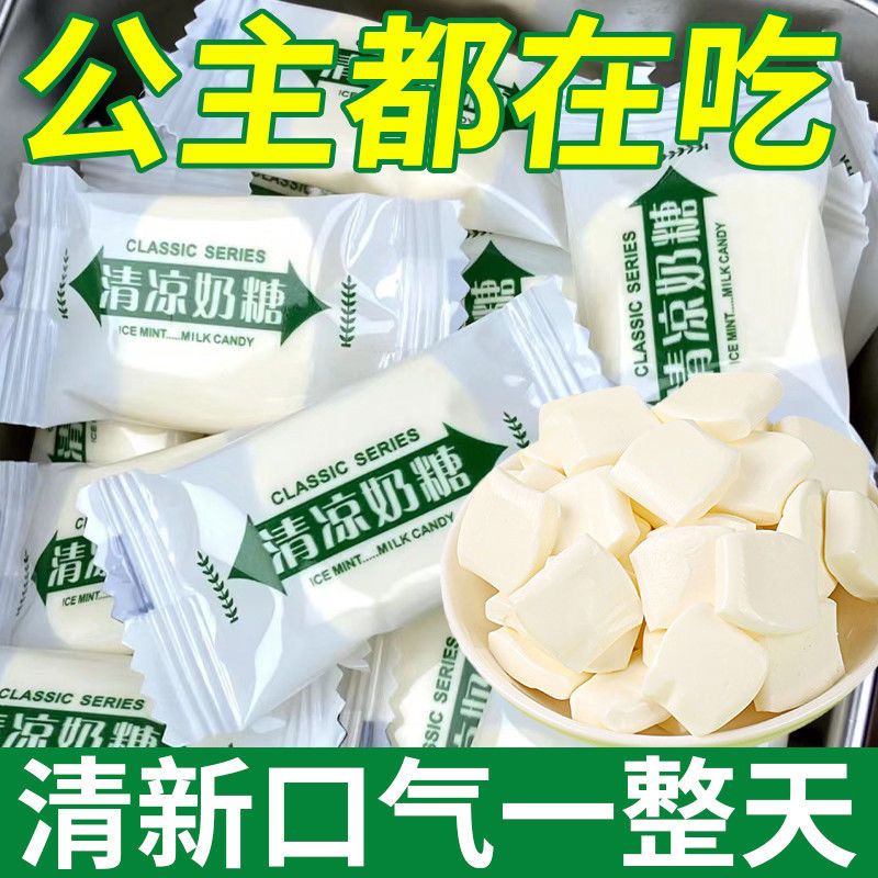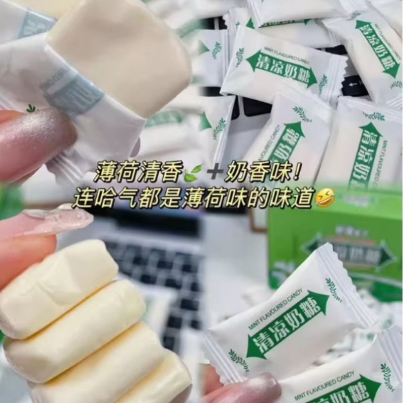 清凉薄荷奶糖冰凉奶糖清新口气休闲零食怀旧童年老式糖果软糖好吃