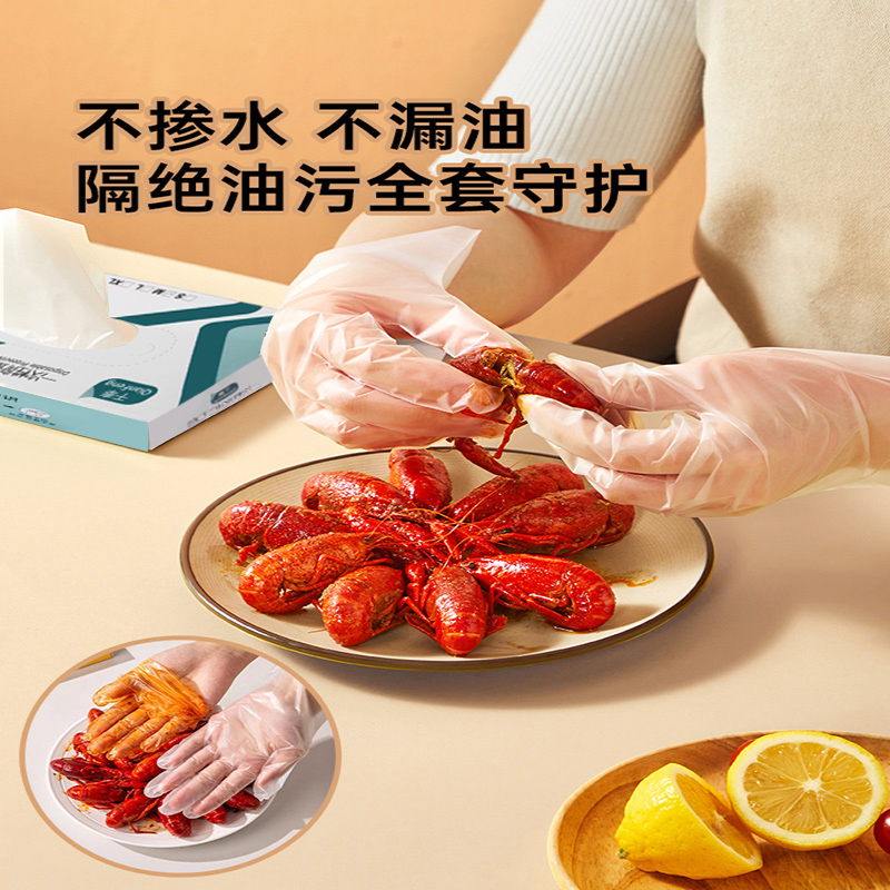一次性手套食品级加厚款透明PE手套手膜餐饮小吃龙虾烘培商用批发