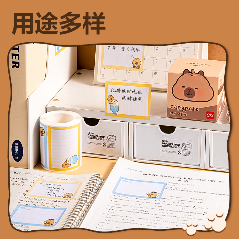 得力卡皮巴拉抽拉记事贴便签纸便利贴纸高颜值学生专用ins标签索引贴全贴有粘性强便签本n次贴萌趣扩张留言贴