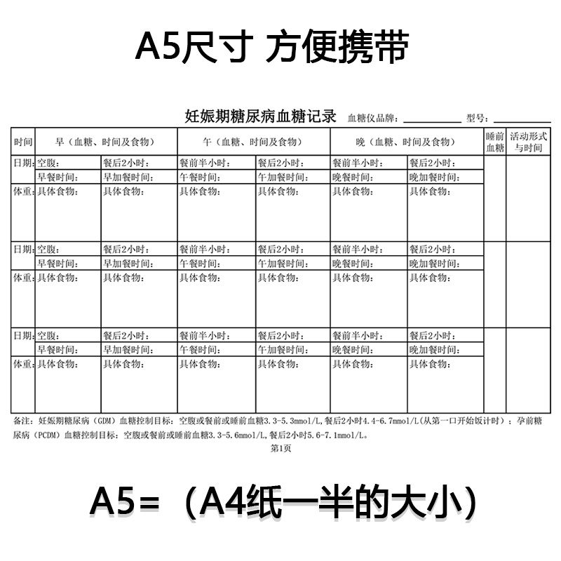 妊娠期糖尿病血糖记录本孕期饮食情况孕妇血糖体重记录控糖日记本
