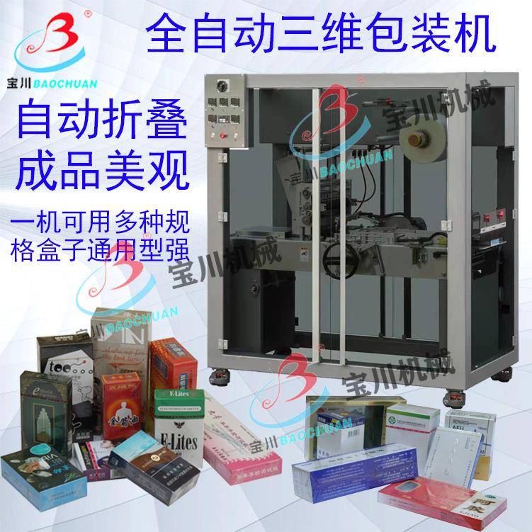 全自动透明膜三维包装机易拉线覆膜机化妆品保健药品烟盒子烟包机