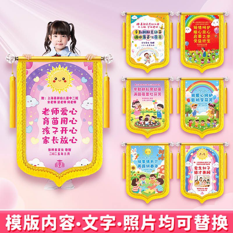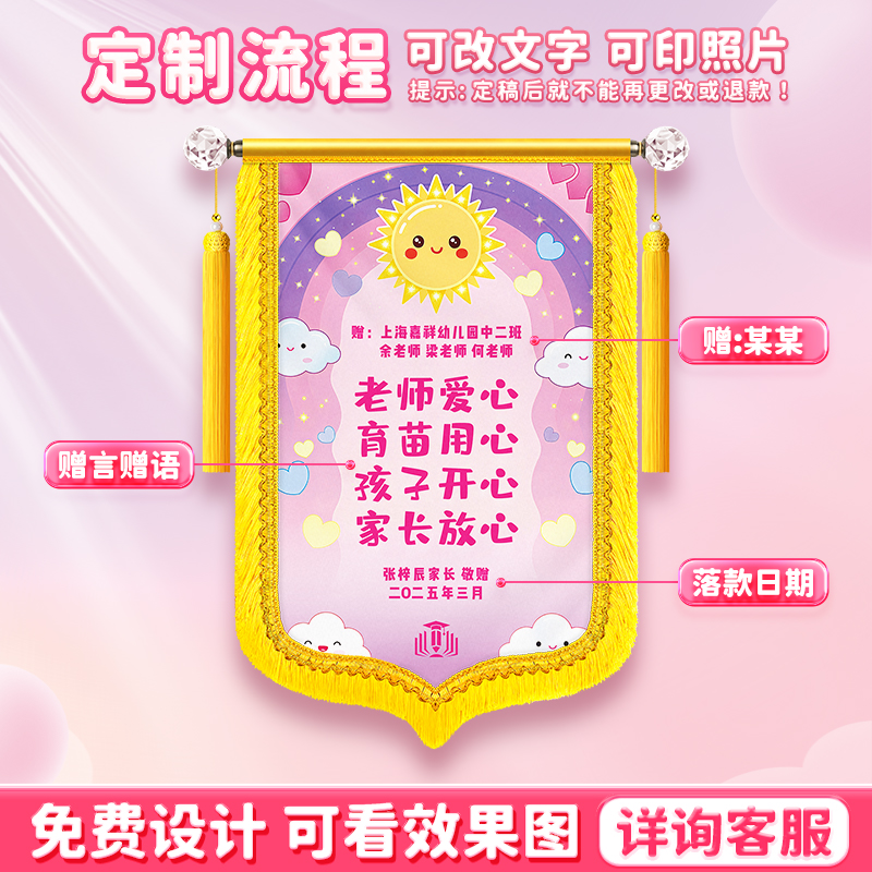 彩色锦旗定制定做感谢幼儿园老师开学旌旗订做制作赠送儿童学前艺术舞蹈培训班书法美术托育早教班教师节锦旗